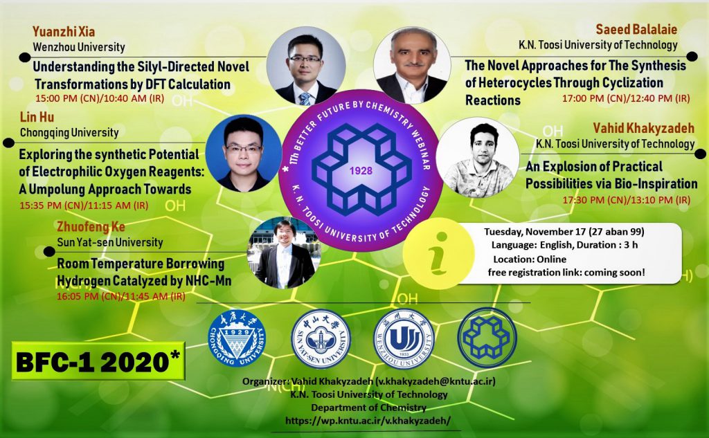 K.N.T. University of Technology, Wenzhou university, Sun Yat-Sen university and Chong Qing university held the first webinar of better future by chemistry on November 17, 2020 .